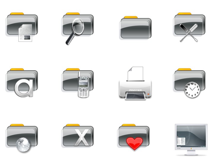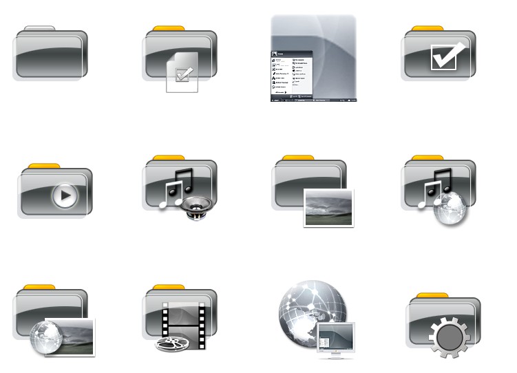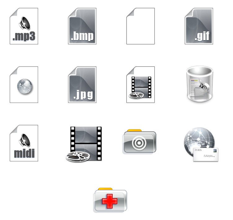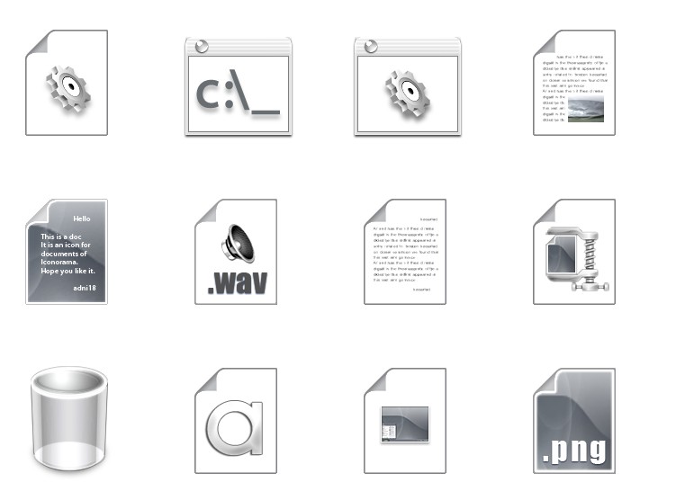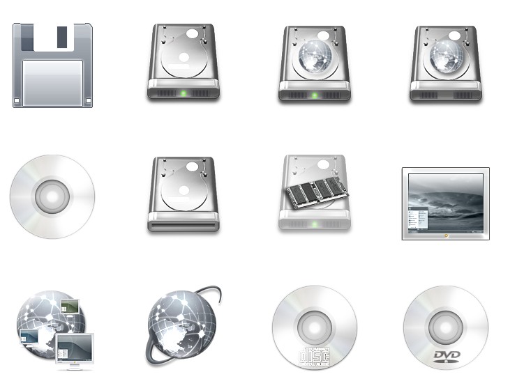 此专辑共含61张尺寸为128x128像素的银色系列电脑桌面PNG图标素材。