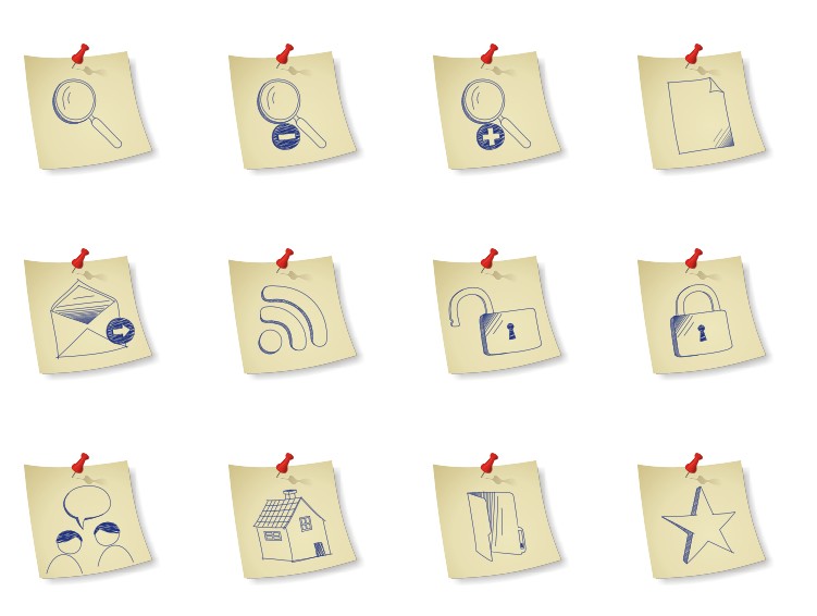 此专辑共含20张尺寸为128x128像素的油笔线稿便签PNG图标素材。