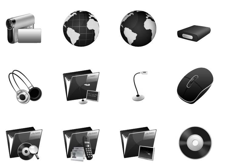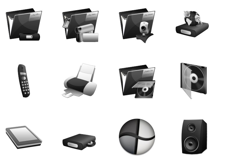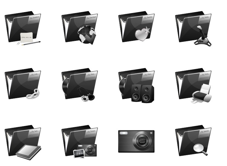 此专辑共含48张尺寸为128x128像素的黑色系统PNG图标素材。