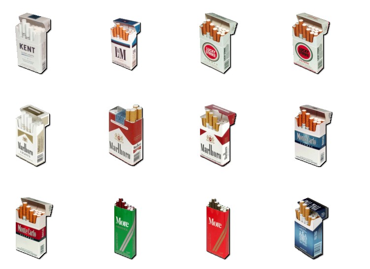 此专辑共含33张尺寸为128x128像素的各种各样的烟PNG图标素材。