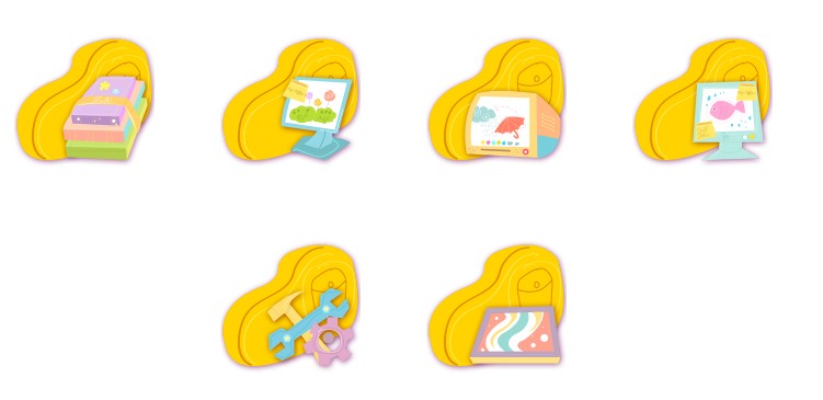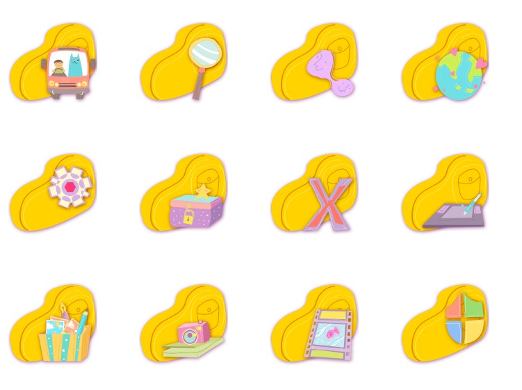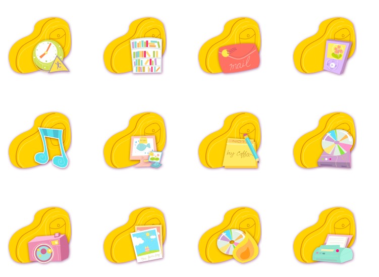 此专辑共含42张尺寸为128x128像素的心形卡通文件夹PNG图标素材。