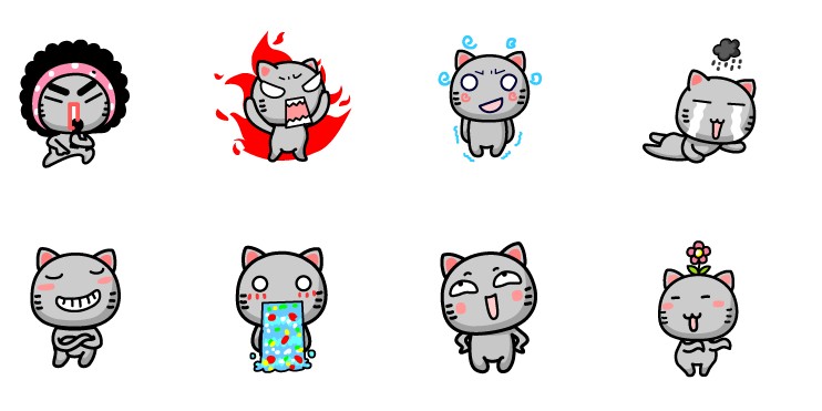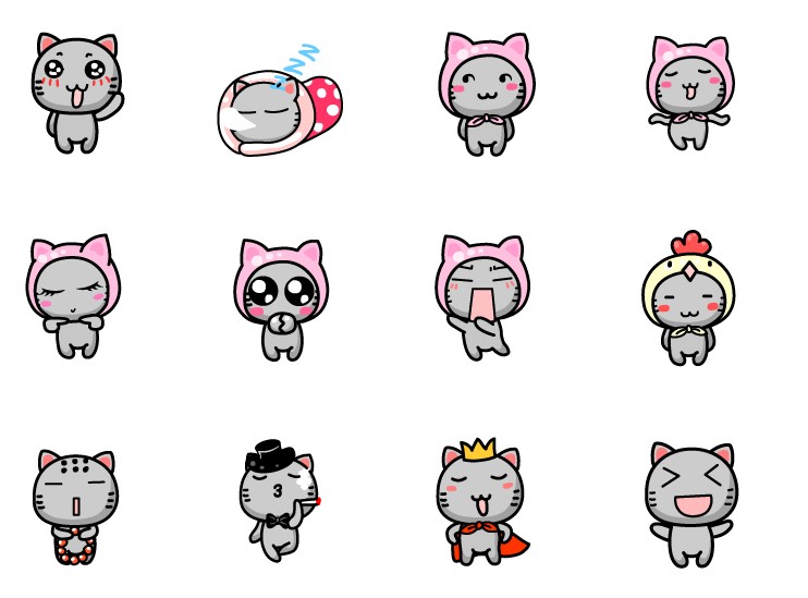 此专辑共含20张尺寸为128x128像素的可爱的猫咪小灰PNG图标素材。