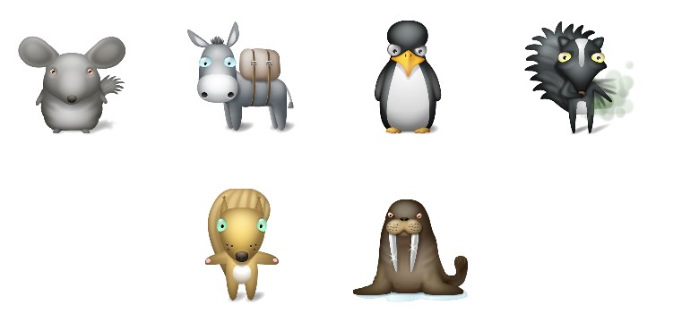 此专辑共含6张尺寸为128x128像素的6个可爱的小动物卡通PNG图标素材。