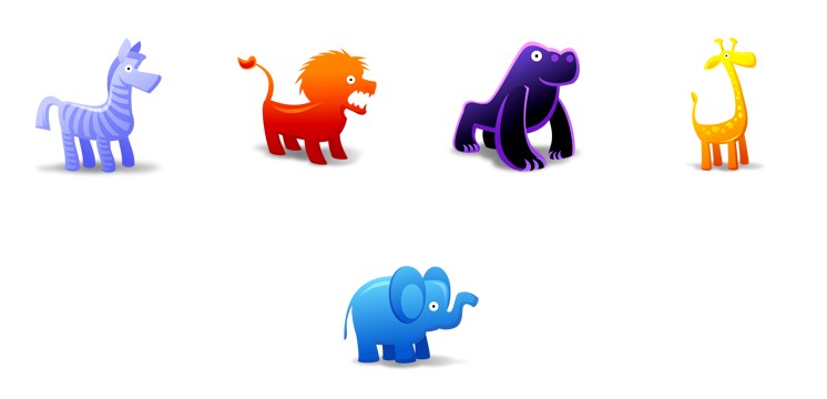 此专辑共含5张尺寸为128x128像素的5个可爱的动物PNG图标素材。