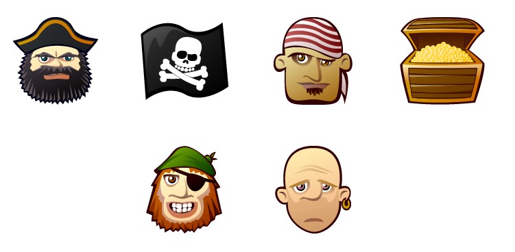 此专辑共含6张尺寸为128x128像素的海盗与宝藏PNG图标素材。