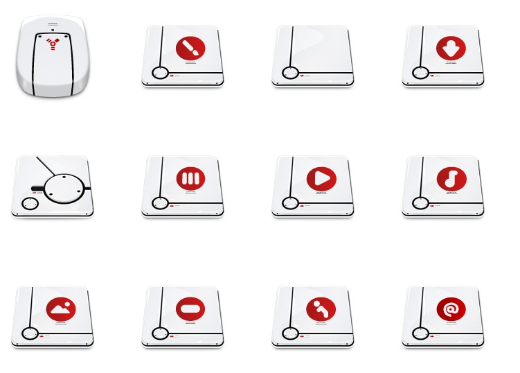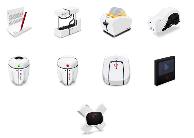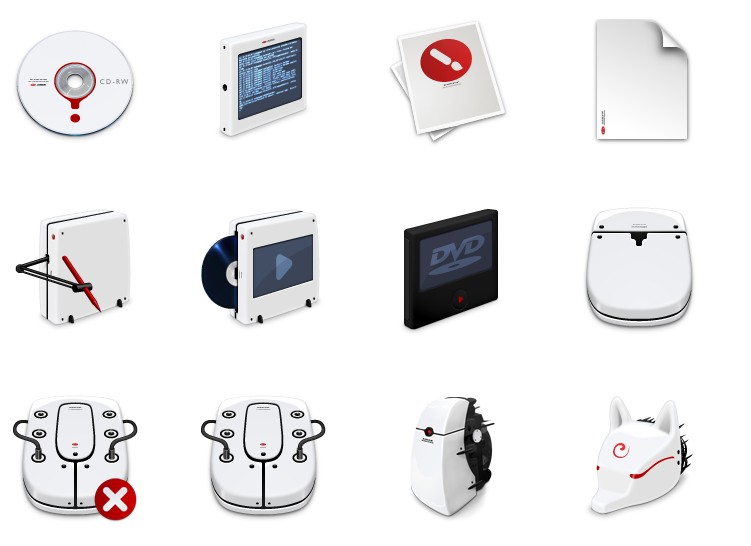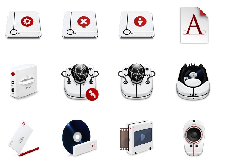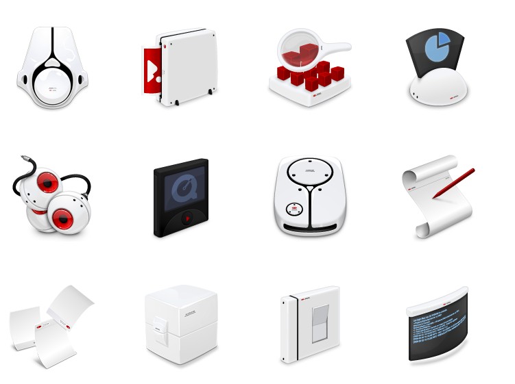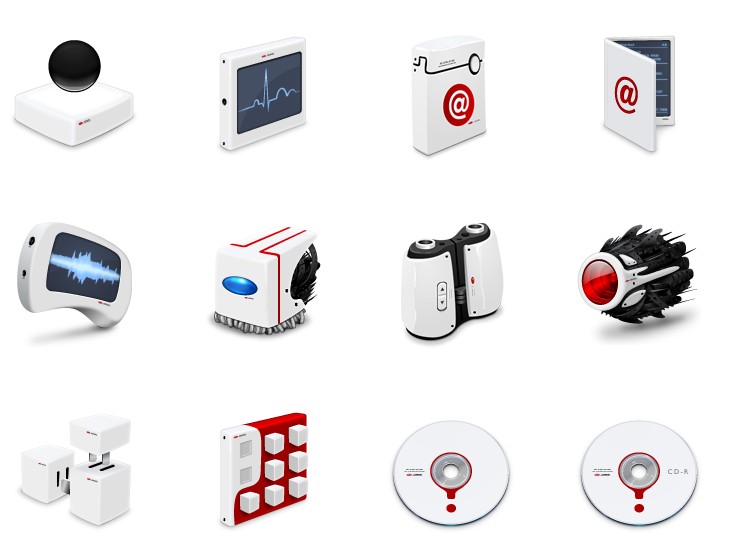 此专辑共含69张尺寸为128x128像素的红白黑风格科幻系列PNG图标素材。