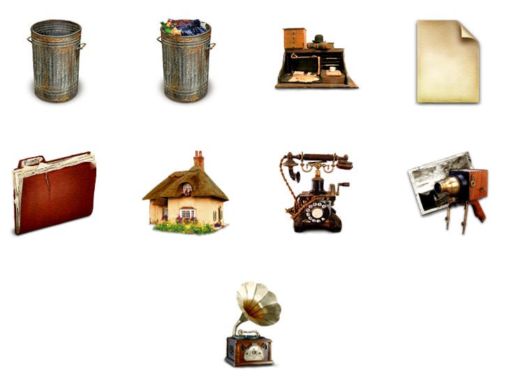 此专辑共含33张尺寸为128x128像素的怀旧风格PNG图标素材。