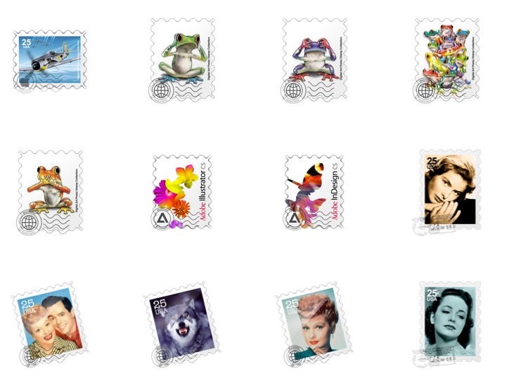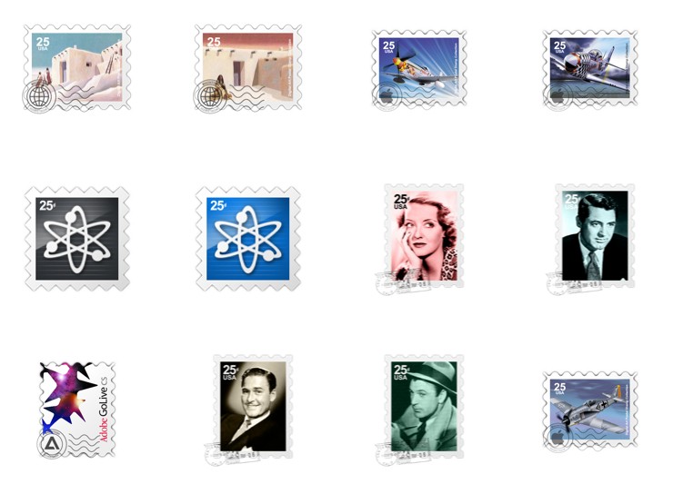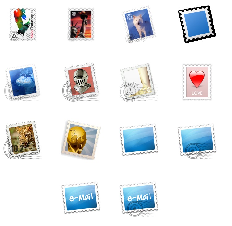 此专辑共含38张尺寸为128x128像素的邮票样式图标精选集PNG图标素材。
