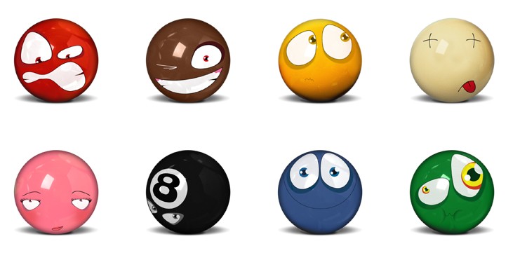 此专辑共含8张尺寸为128x128像素的Snooker Balls恶搞表情PNG图标素材。