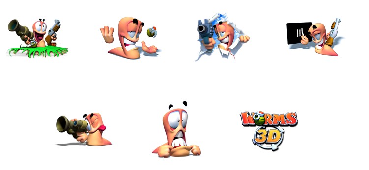 此专辑共含7张尺寸为128x128像素的3D百战天虫PNG图标素材。