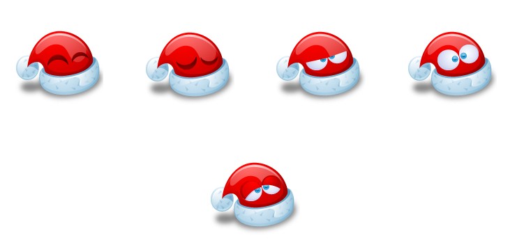 此专辑共含5张尺寸为128x128像素的可爱圣诞帽表情系列PNG图标素材。