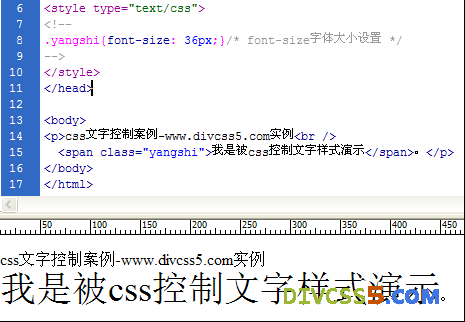首先设置了font-size的值为36px,则下面结果显示字体比较大。