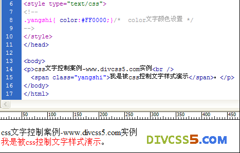 2、文字的颜色使用css中color颜色属性通过color更样式值设置文字样式的颜色为红色