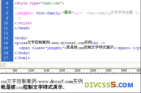 5、文字的字体-用到属性font-family,字体设置图例如下