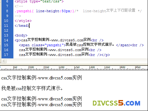 6、文字的上下行间距,使用到css文字设置单词line-height,这里设置line-height:50px;
