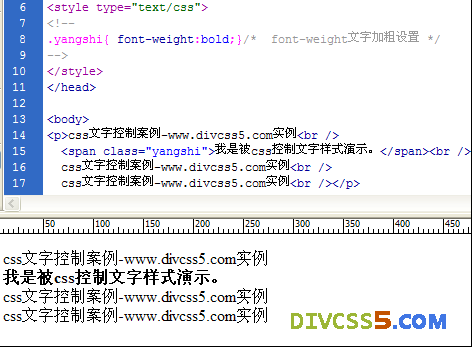 8、字加粗方式-可以直接对需要加错文字前加<b>文字后加</b>或<strong></strong>来实现,对文字的加粗,这里你可以用css来控制对文字加粗。这里用到font-weight来设置如font-weight:bold;