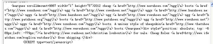 后来想想会不会在文章页也被挂马了,结果果然如此。真是气愤,其实文章页出现状况我早有察觉,在幻灯片下面出现一条黑线,原来不重视,以为是浏览器的问题或者是模板的问题导致文章页错位。今天把文章页的模板中挂黑链的代码也删除了,结果就没有错位的问题了。