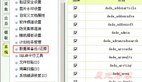 ①【前提是网站后台维护可以登入进去】进入DEDE后台,选择“系统-数据库备份/还原-全选-提交”开始,注意数据库对应版本要和新空间的数据库版本,备份需要一段时...