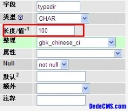 创建栏目使用外部链接的时候发现网址的长度不够用,现在终于解决啦。方法如下: 1、进入数据库高级管理,再进入你的DedeCMS数据库,表dede_arctype,查看其结构, 将typedir字段由原来的char(60),改成char(100) 2、同样在数据库高级管理找到表dede_keywords...