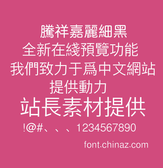 腾祥嘉丽细黑繁字体 腾祥嘉丽细黑繁字体免费下载,本字体下载由织梦吧-字体库免费提供,愿成为您的字体管家腾祥嘉丽细黑繁字体下载
