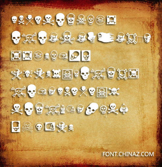 恐怖代表头骨图形字体 恐怖代表头骨图形字体,本字体下载由织梦吧-字体库免费提供,愿成为您的字体管家