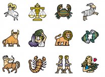 《简单彩绘风格星座PNG网页按钮素材图标128x128》
