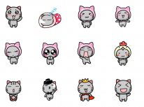 《可爱的猫咪小灰PNG网页按钮素材图标128x128》