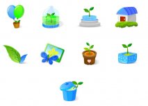 《蓝色卡通风格植物PNG网页按钮素材图标128x128整理大全》