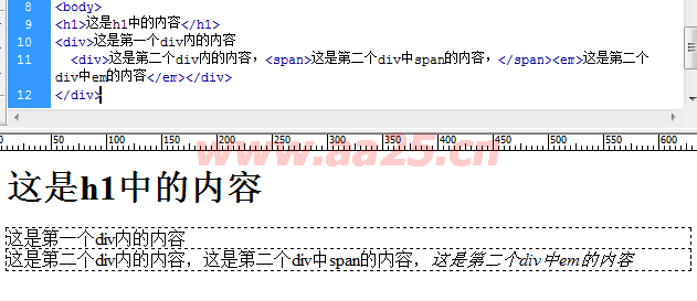 从上图的例子可以看出,块级元素默认占据一行,相当于在它之前和之后各插入了一个换行;而内联元素span没对显示效果造成任何影响,事实也是如此;em只是让字体变成了斜体,也没有单独占据一行。这就是块级元素和内联元素,正因为有了这些元素,才使我们的网页变得丰富多彩。