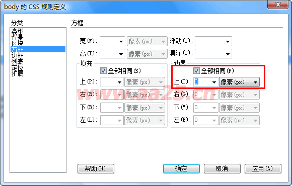 也许预览出来的效果和我的不一样,别急,还有一项设置,默认body是有外边距的,所以这里还得设置body的外边距为0;点击css面板上的新建按钮,然后在新建面板中选择:标签(重定义标签外观),然后选择body,设置body的边界为0即可。